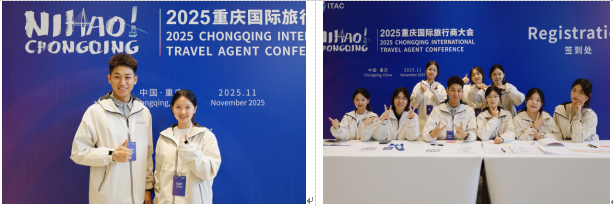 2025年11月5日,2025重庆国际旅行商大会在渝隆重开幕。作为我市规格高、影响广的国际性文旅品牌活动,本次大会汇聚了全球近40个国家和地区的400余位政府代表、驻华使节、行业领袖及媒体嘉宾。在这场文旅国际合作的盛会上,我校东方语言文化学院越南语专业研究生车世豪、陈莹莹两位同学以志愿者身份亮相,他们的身影成为大会中一道亮丽的风景线,充分展现了我院学子优秀的专业素养与国际视野。