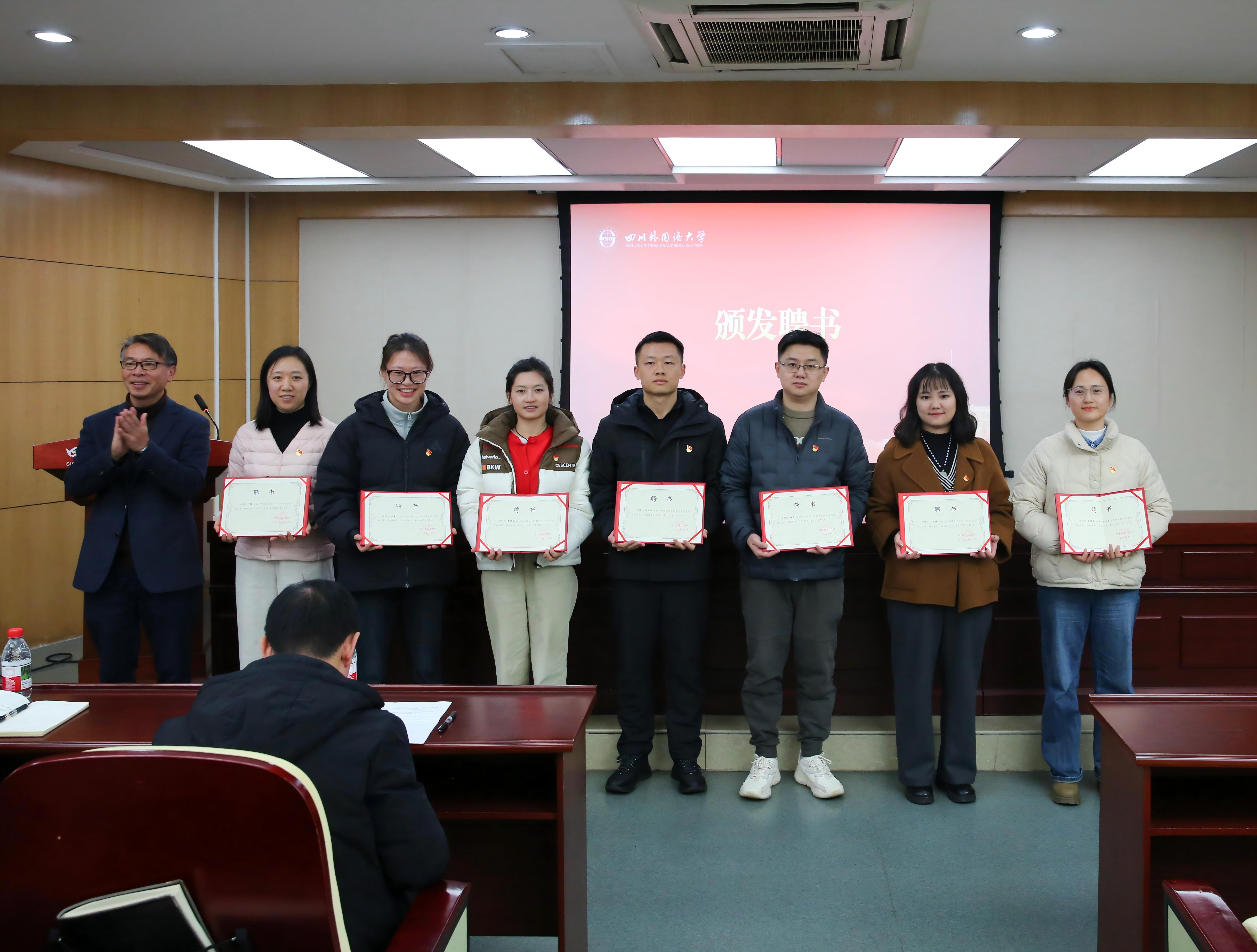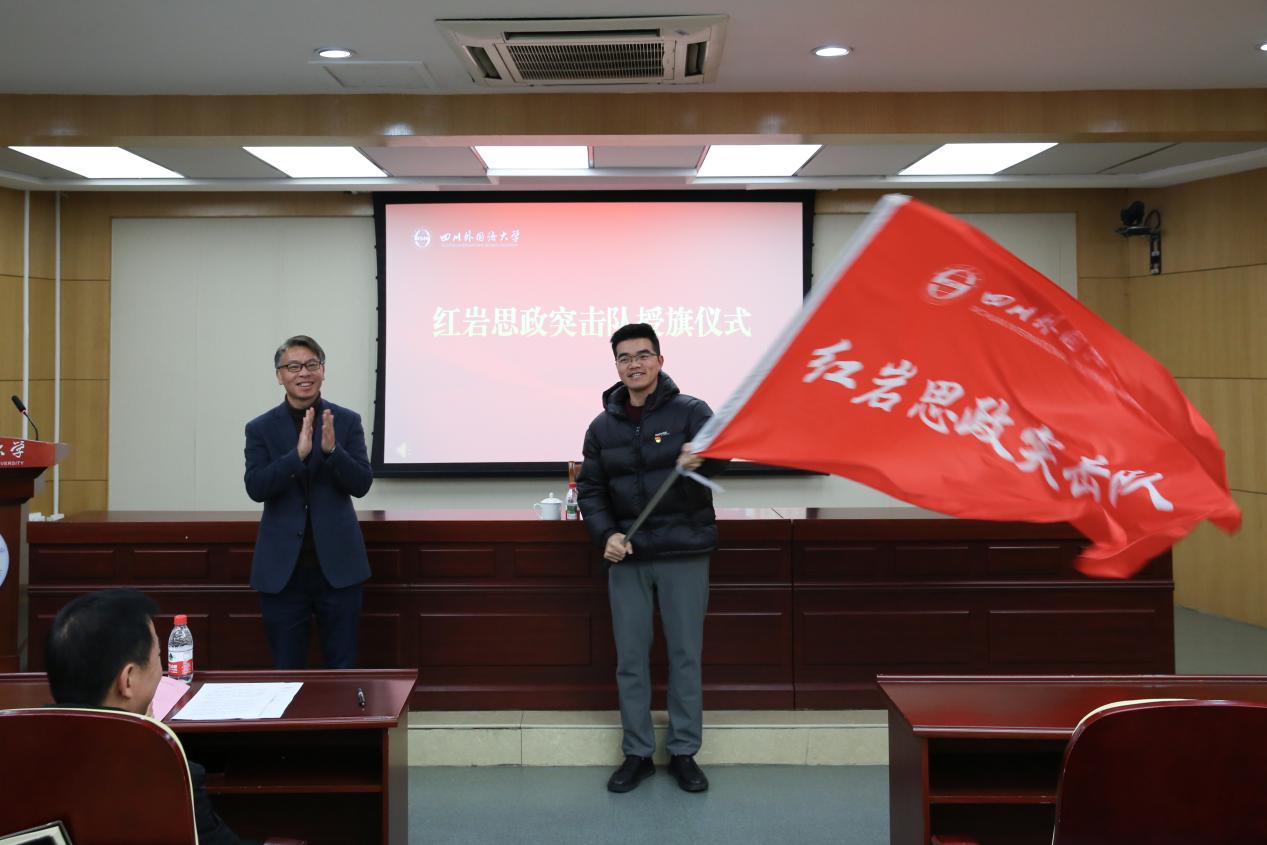 党委学工部部长常慧明宣读《关于公布四川外国语大学首批红岩思政突击队成员入选名单的通知》。卢波为红岩思政突击队授旗并向英语学院翟琳等14名首批成员颁发聘书。