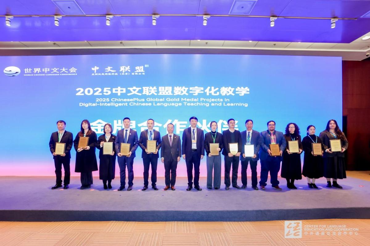 会议期间,2025年中文联盟数智化教学“金牌”项目评选活动结果公布。我校凭借在数字化教学领域的突出贡献,获评“金牌合作机构”;我校研发的“国际中文教育辅助学习AI助手”荣获“金牌教学工具”称号。
