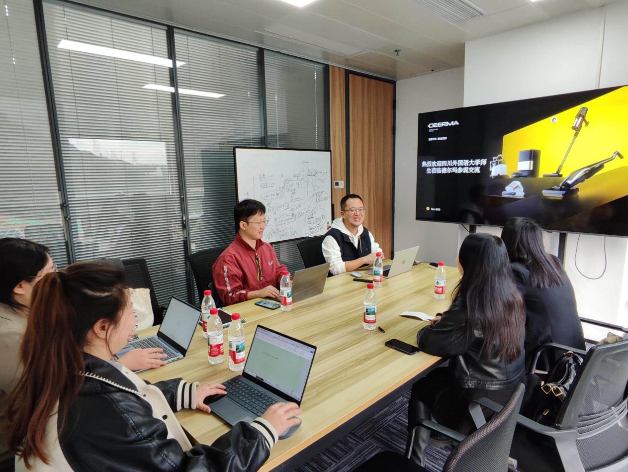 在广东德尔玛科技股份有限公司深圳分部,双方围绕电子消费品行业发展趋势、国际化运营中对外语人才的精准需求以及校企联合培养机制等议题展开深入交流。企业高度认可外语类人才在海外市场拓展中的关键作用,并表达了深化合作的强烈意愿。
