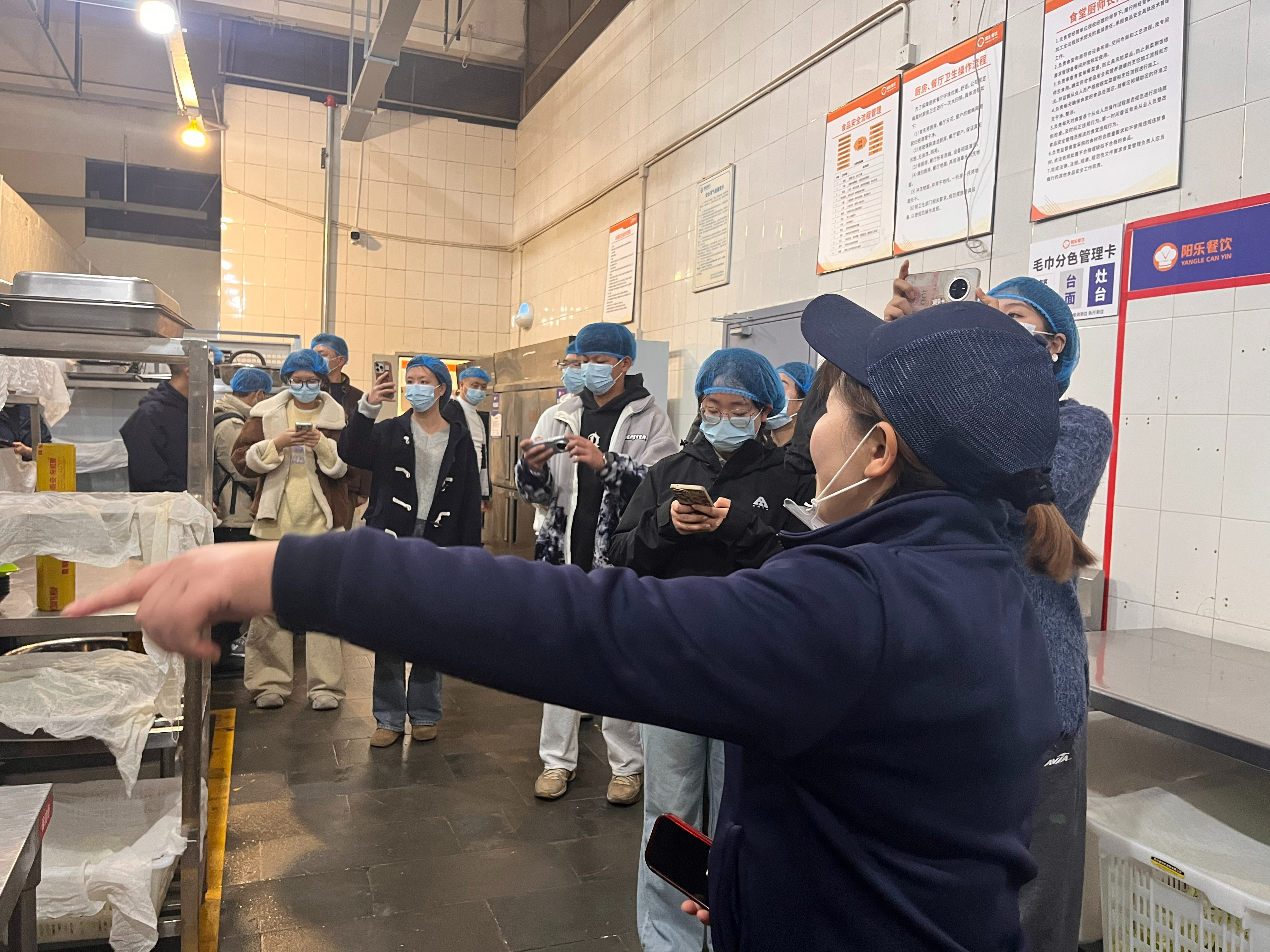 同学们在工作人员的引导下,实地参观了食材仓储区、清洗加工区、烹饪操作区、餐具洗消间等关键区域,了解食堂在食品留样、餐具消毒、环境卫生、人员健康管理等方面严格执行的规章制度和操作标准。通过亲眼所见,同学们对食堂规范、严谨的食品安全管理工作有了更为直观和深入的认识。