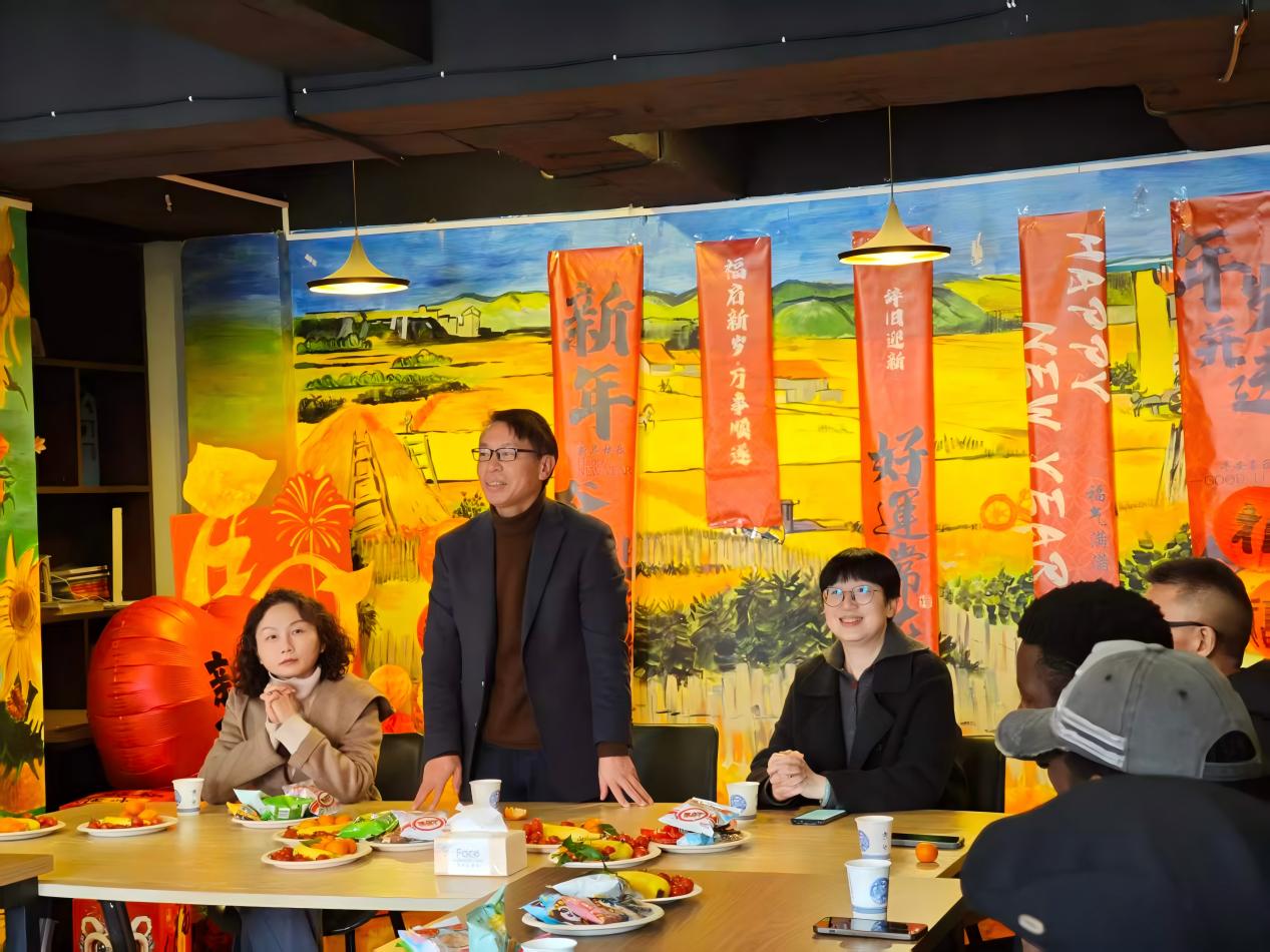 骏马奔腾辞旧岁,祥瑞盈门贺新春。2月13日,在春节即将来临之际,学校在东校区宏文楼举行了以“春风送暖,共话新年”为主题的2026年春节留校学生慰问座谈会。活动现场张灯结彩,欢声笑语,洋溢着浓浓的年味与家的温暖。副校长卢波与二十余名因实习、路途遥远等原因留校的本科生、研究生及国际学生欢聚一堂,共迎马年新春。