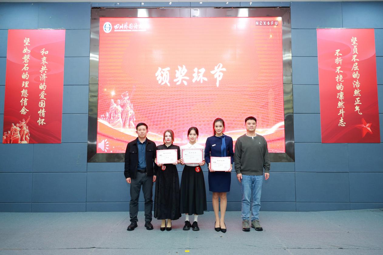 11月6日下午,我校第四届“川外学子话红岩”革命故事讲解路演比赛决赛在四川外国语大学歌乐楼A栋学术报告厅举行。副校长卢波,重庆五一劳动奖章获得者、中共重庆市委当代党员杂志社《当代党员》编辑部党支部书记、执行主编陈国栋,重庆红岩革命历史博物馆参观接待二部部长、中国博物馆协会社教专委会委员何玲出席活动。
