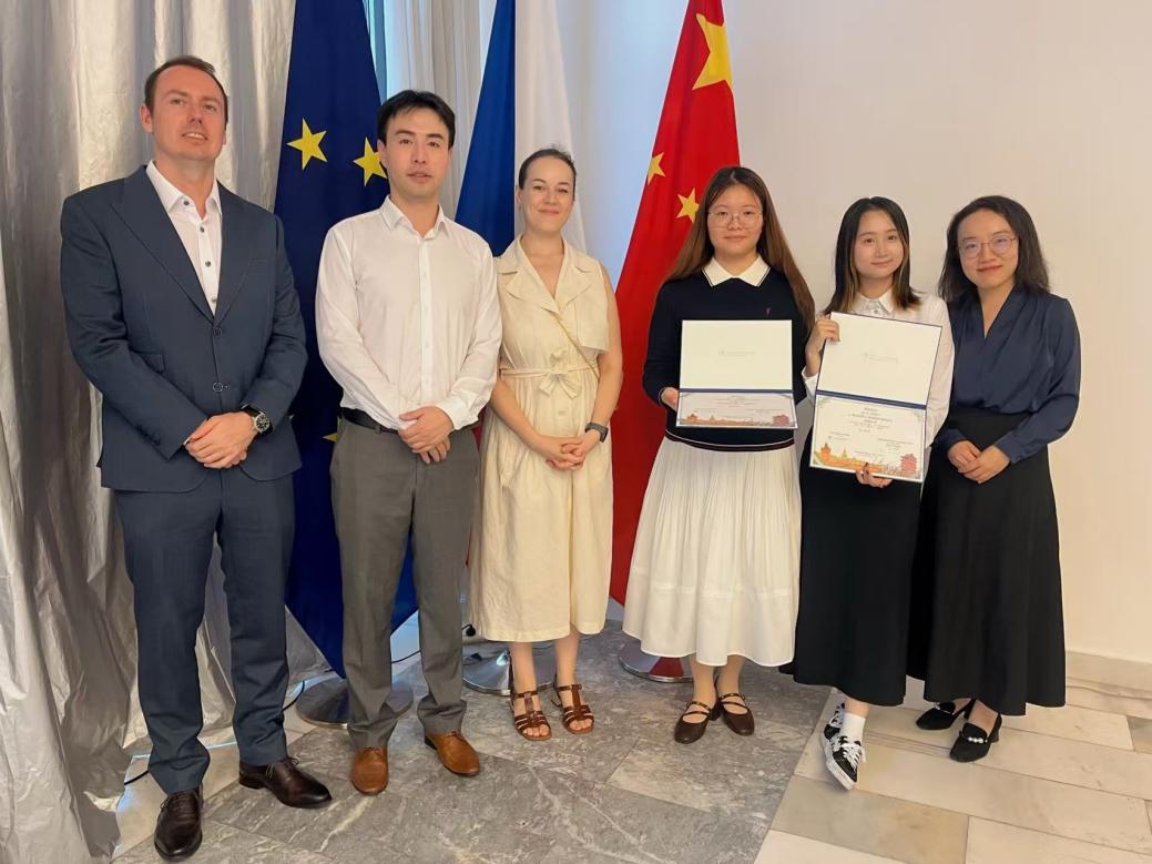 2025年9月25日,捷克共和国驻华大使馆主办的全国捷克语演讲比赛在北京举行,我校捷克语专业2022级的张婉卿同学荣获高年级组一等奖,捷克语专业2024级的李敏睿同学荣获低年级组三等奖。