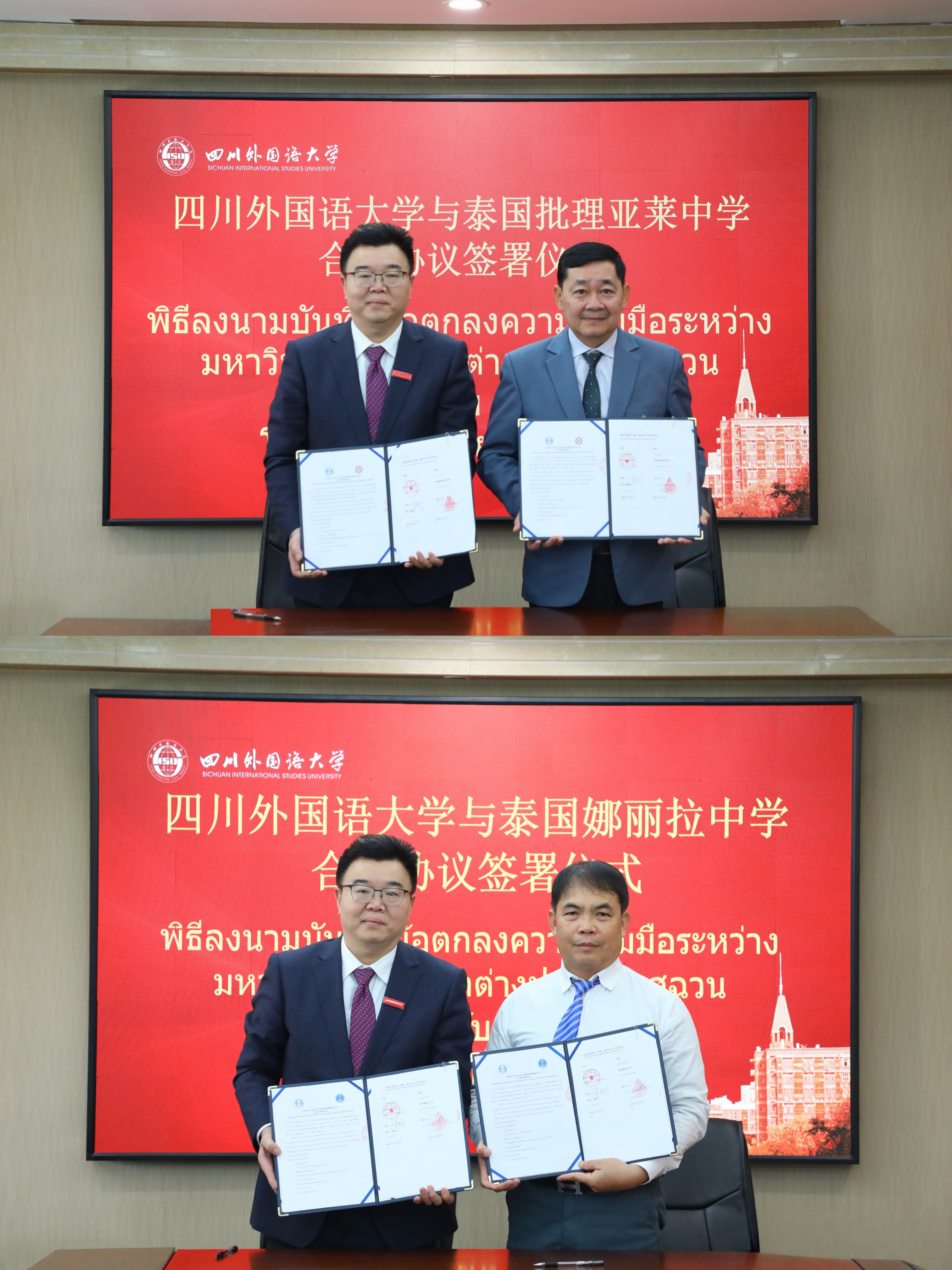 我校相关部门和学院负责人、泰国两所中学的随行教师代表参加签约仪式。