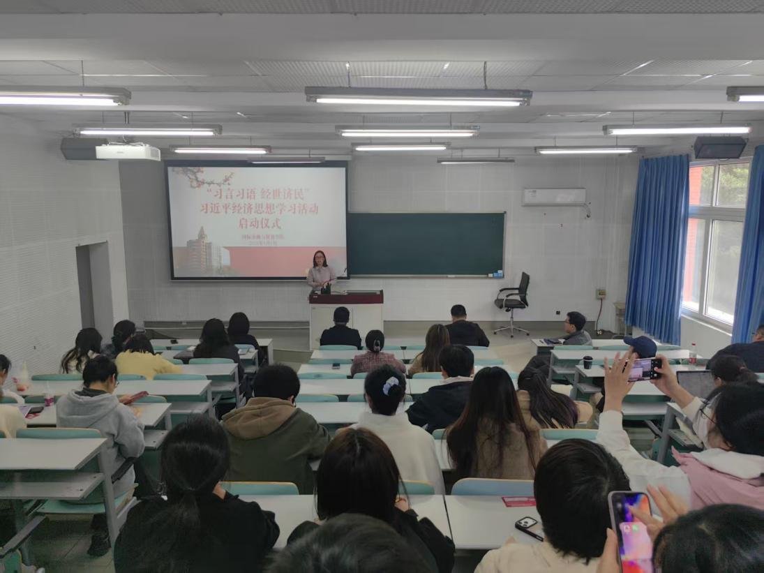 启动仪式上,学院党总支书记倪颖军作工作部署。她强调,要把学习贯彻习近平经济思想作为一项长期重要政治任务,推动各党支部、各教研室、各教学团队、科研团队全覆盖、常态化开展专题学习研讨,坚持学深悟透、融会贯通、学以致用。要聚焦立德树人根本任务,全力推进习近平经济思想进教材、进课堂、进头脑,把新发展理念、高质量发展、经济安全、高水平对外开放等核心内容有机融入专业教学与科学研究,以科学理论引领学院事业高质量发展。