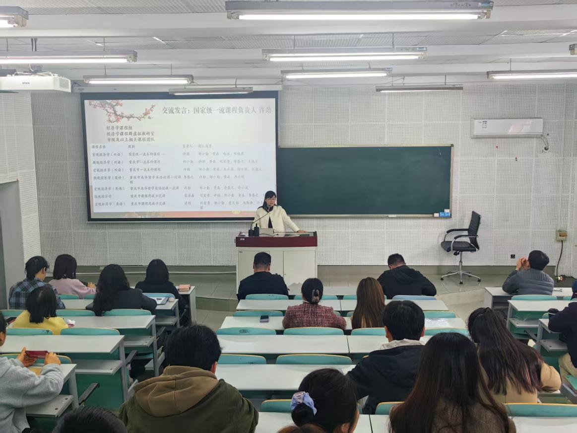许劲围绕深化课程建设、推动“三进”落地作交流发言。她提出,作为国家级一流课程负责人,将带头把习近平经济思想核心要义、精神实质与课程内容深度融合,优化课程教学设计,更新教学案例,融入高质量发展、新质生产力、经济安全等鲜活素材,打造有深度、有温度、有实效的“课程思政”示范课堂。以课程建设为抓手,带动团队教师共研教学、共建资源,推动习近平经济思想从“课堂讲授”走向“思想浸润”,切实提升育人实效。