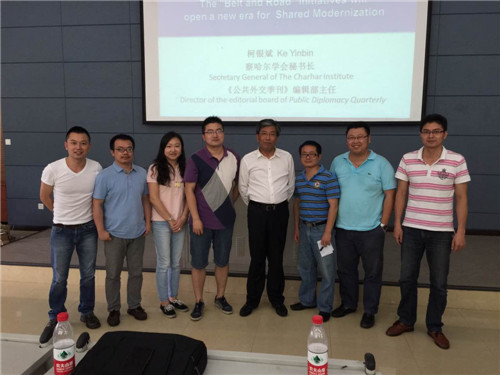 2015年6月12日,应重庆国际战略研究院之邀,察哈尔学会秘书长、《公共外交季刊》编辑部副主任柯银斌教授在b栋学术报告厅为研究院师生做了题为《一带一路开创“共同现代化”新时代》的讲座。
