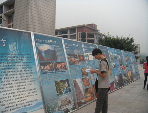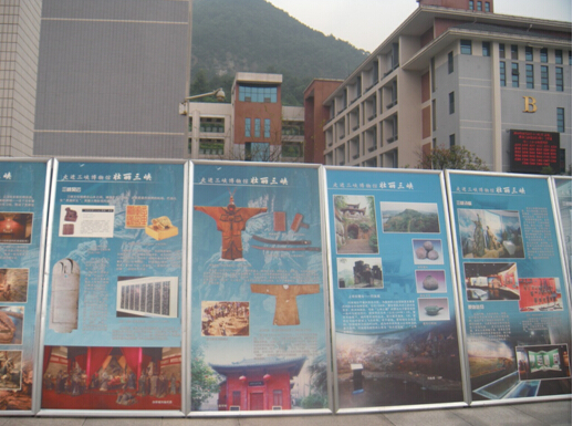 活动当天,重庆中国三峡博物馆为进一步推进公共服务均等化,在学校钟楼展出文物简介展板的同时还推出了免费微信智能导览。通过关注微信,可以随时随地收听长达五个小时的关于展览文物的讲解,能让同学们更加了解中华民族传统文化。活动现场,工作人员向全校师生分发三峡博物馆的宣传册和纪念书签、纪念扇等礼品,大力推广微信智能导航,也给同学们带来了一场精致的文化享受、深刻的体会到了文化的魅力。