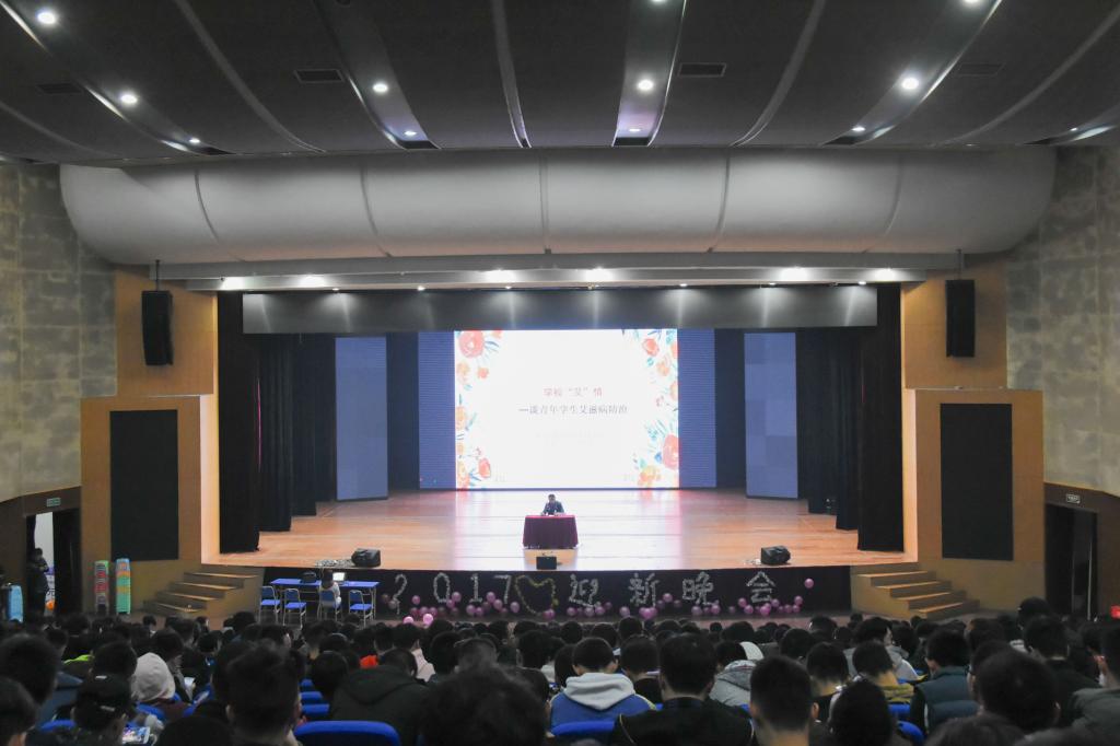 2017年12月5日,大学生艾滋病防治专题讲座在我校东区大礼堂召开,2017、2016级全体男生参与讲座,本次活动由大学生心理健康教育中心与校医院联合主办,学生处副处长苏雪出席并主持活动。