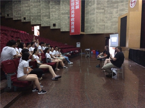 部、外事处、学生处、保卫处、院办、后勤集团等各职能部门的共同努力下,由商务英语学院博艺莎剧社承办的“英国tnt剧院《哈姆雷特》川外行”演出活动得以顺利开展,英国tnt剧团于2015年5月31日下午来到我校,与博艺莎剧社同学开展了精彩的莎剧工作坊活动,并于当日晚七点在东区大礼堂上演了莎士比亚经典悲剧《哈姆雷特》。