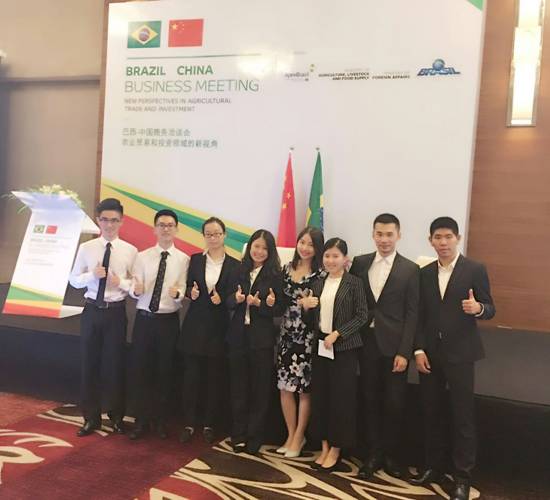 2016年9月12日,以“农业贸易和投资领域的新视角”为主题的巴西-中国商务洽谈会在重庆凯瑞酒店举行。翻译学院高翻队成员于薛龙、李成彬、刘力铭、刘美华、白斯航、曾思阳,高翔、何承恩为本次洽谈会提供翻译服务。同学们良好的表现得到了主办方的一致好评。