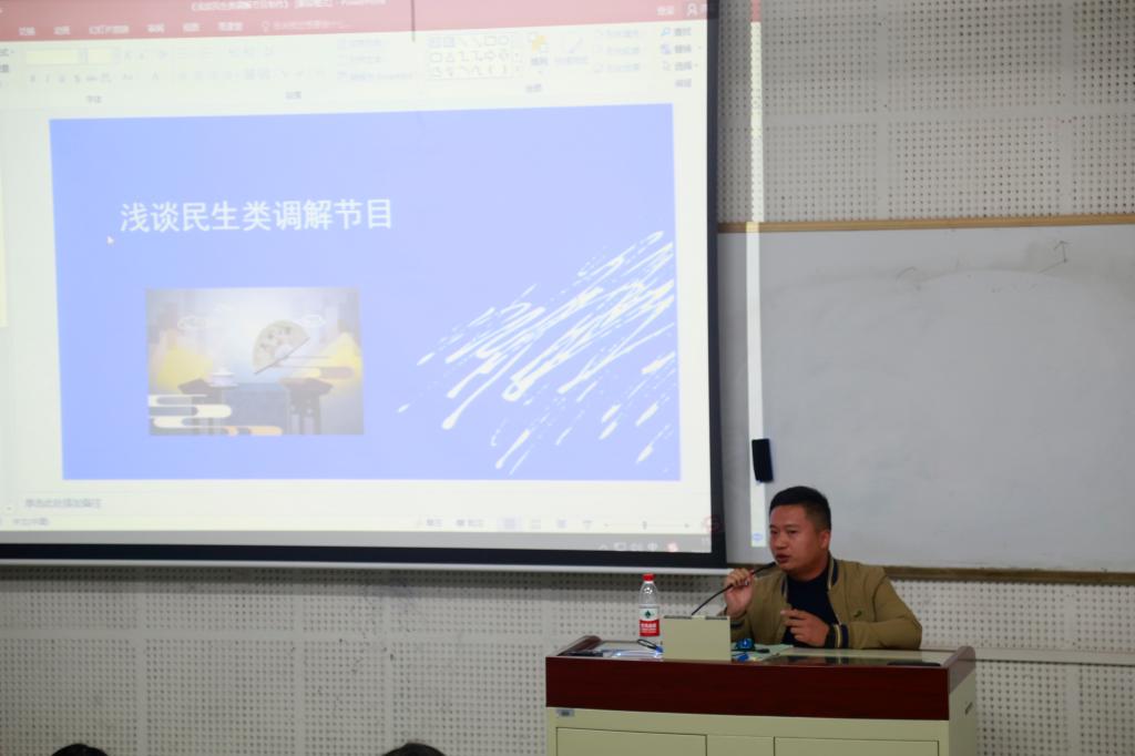 有多年媒体从业经验的镜记者郭金铭、编导宋兵建老师则从媒体工作的实践经验方面,为同学们深度解析了新闻节目类型以及采访技巧以及民生类调解节目的制作过程与技术技巧,给学生生动展示了媒体从业者应具备的能力,加深了学生专业及媒体行业的认识。