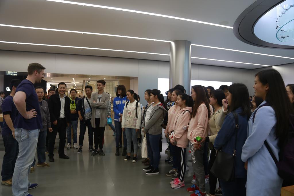 广播电视学专业同学还在杨成杰老师的带领下,有的同学走进山城步道、下浩老街采风,有的同学则走进Apple Store,体验“Apple社区”服务。2015级的同学则由熊国成老师带领,开展了影视摄影实践教学活动。
