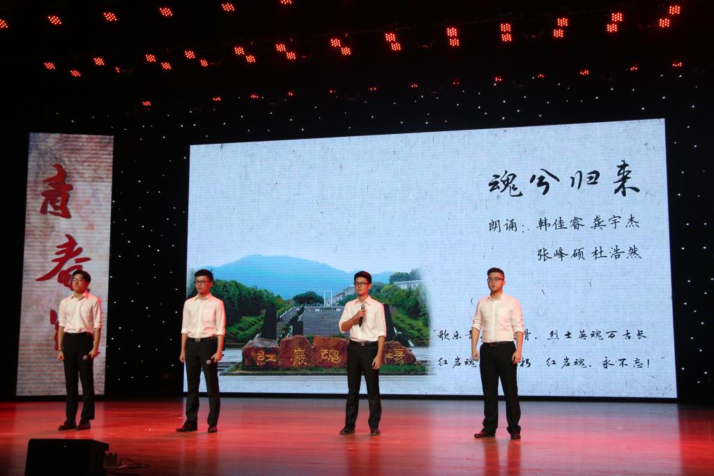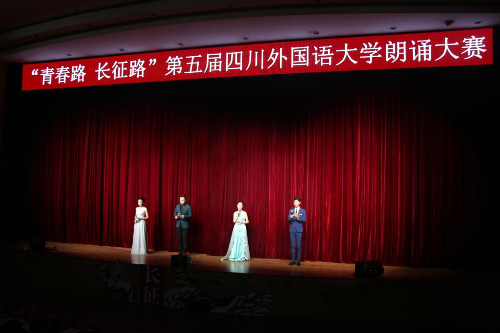 为丰富大学生校园文化生活,弘扬并传承长征精神,“青春路,长征路”第五届四川外国语大学朗诵艺术大赛决赛于我校东校区大礼堂举行。来自我院的10号选手韩佳睿、龚宇杰、张峰硕、杜浩然凭借《魂兮归来》以9.683的全场最高分荣获本届朗诵艺术节一等奖。