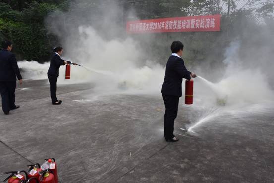 培训结束后,在唐璐轩的指导下,全体人员在松苑20舍旁小运动场进行了消防实战演练。每个人按照“一摇、二拔、三喷射”的操作方法,使用干粉灭火器将火堆成功扑灭。