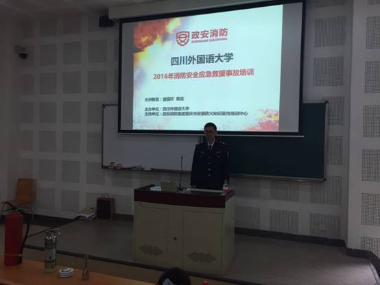 为加强学校消防工作“四个能力”建设,提高一线员工防范和应对消防安全事故的能力,11月1日上午,保卫处特邀重庆政安消防安全培训中心唐璐轩教官,在西区教学楼C1-2阶梯教室举行消防技能培训。学生志愿者消防大队政委、保卫处副处长李发友,保卫处处长助理李正廷,童家桥派出所李晓辉警长出席本次活动。大正物业公司安保、保洁、宿管人员共六十多人参加培训。