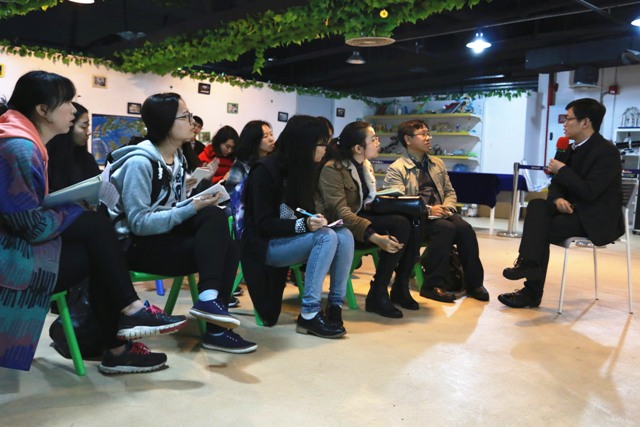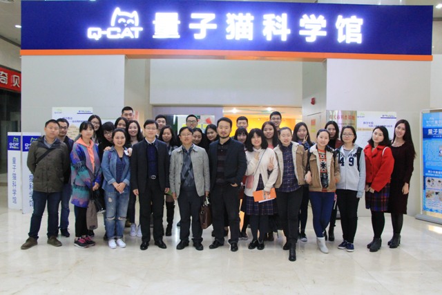 3月23日下午,新闻传播学院2015级文艺与传媒、新闻传播两个专业的26名硕士研究生,在张春林教授的带领下调研了量子猫科学馆,并与其负责人就科学教育产业发展进行了对话。这是张春林教授主讲课程《传媒及文化产业研究》本学期的第一次外出调研,量子猫科学馆ceo李志峰博士和研发总监王进华博士接待了调研老师与学生。