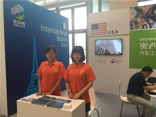 商务英语学院的学生志愿者在全球汽车论坛工作现场