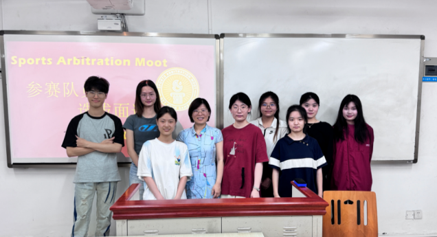 我校代表队由卓越仲裁人才书院班负责人,国际法学与社会学院任娇娇副教授担任教练,团队成员均来自卓越仲裁人才书院班。2021级本科生任颜、2022级本科生马秋萍担任学生领队,其他成员有2022级法学专业本科生何志彬、张传可、吴蔓、黄语涵,以及2024级法律硕士赵彧、王钰琨。在长达数月的备赛过程中,团队成员系统研习国际体育仲裁规则、模拟庭审程序,并通过高强度训练提升英文辩论技巧,为比赛奠定了坚实基础。