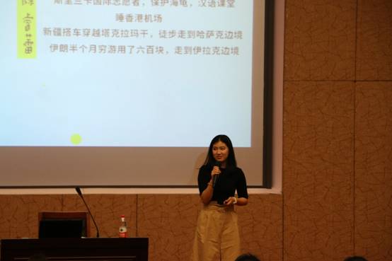 第二场分享会上,校友刘洋用她丰富的学生干部经历告诉学弟学妹们,无论多么迷茫,做好眼前事才是关键。她还从现代大学生容易迷茫的五个方面入手,从思考“大学生为什么不能迷茫?”进行深入分析,并用“标杆法”、“提升效率四步法”倡导主人翁意识、主动学习意识、时间管理意识、积极思考意识,使目标更清晰、道路更明确、剖析更透彻、选择更合适。陈睿蕾讲述了她在新疆搭车穿越塔克拉玛干、徒步走到哈萨克边境、六百元穷游伊朗半个月走到伊拉克边境等亲身经历,用她的勇气告诉学弟学妹们大学不迷茫的第一步是找到兴趣所在,在此基础上,走一步算一步,但在执行的路上要擅于发现问题,并及时的解决问题。这样一次接着一次的的陷入迷茫,但又一次接着一次的找到明确的方向,那么不仅是大学,甚至整个人生都会开朗许多。