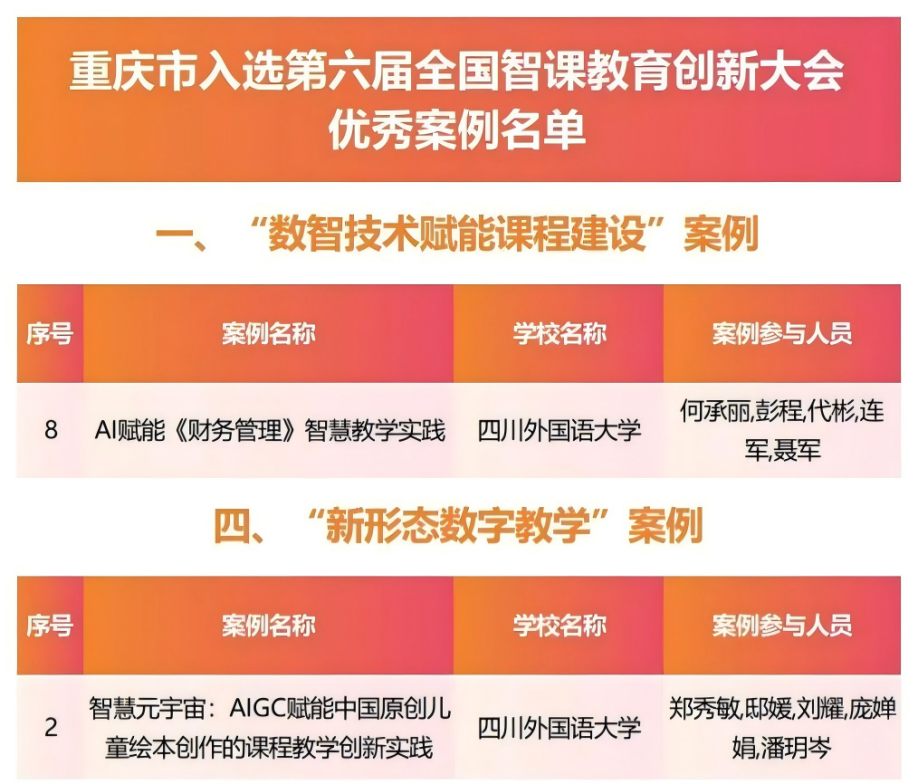 近年来,学校紧紧围绕立德树人根本任务,主动顺应教育数字化发展趋势,持续推进人工智能、元宇宙等前沿技术与教育教学深度融合。此次国际工商管理学院和国际教育学院的两项案例同时入选全国优秀案例,是我校系统推进高等教育数字化转型、积极服务国家教育现代化战略的重要体现。下一步,学校将持续深化智慧课程建设与教学模式创新,全面提升教育教学信息化水平,为本科教育高质量发展注入新动能,为实施国家教育数字化战略贡献更多川外智慧与实践。