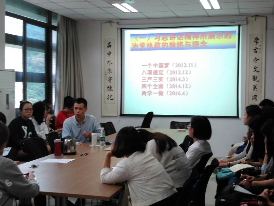 商务英语学院学生一支部、二支部及研究生支部于2016年10月21日在西区行政楼商务英语学院会议室B602开展了“认真学习讲话,推动学校科学发展”专题党课。此次党课由商务英语学院党总支书记岳兴懋老师主讲,商英学院学生二支部及研究生支部书记潘庆老师以及商英学院学生一支部、二支部及研究生支部全体党员参加了学习。