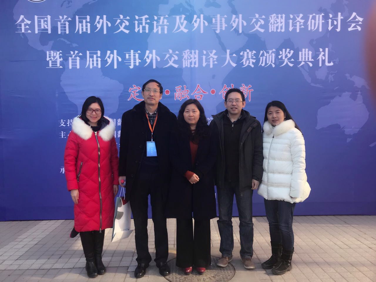 2017年12月16-17日,国际关系学院副院长刘玉梅教授一行四人赴郑州大学参加了“全国首届外交话语及外事外交翻译研讨会暨首届外事外交翻译大赛颁奖典礼”。会上刘玉梅教授受邀做了主题为“一带一路背景下外语学科建设的反思与超学科前瞻”的主旨报告。她在反思传统学科划分问题的基础上,指出超学科发展的优势,并分析了从超学科角度解决外语学科发展的瓶颈问题的可行性。刘教授提出,在当前一带一路背景下,外语学科可充分利用其超学科品格,激发外语及相邻相关相近学科建设的“鲶鱼效应”,激活学科之间的活力,为国家战略和社会发展服务。该报告引起来自不同学科专业领域的专家的共鸣和热议。