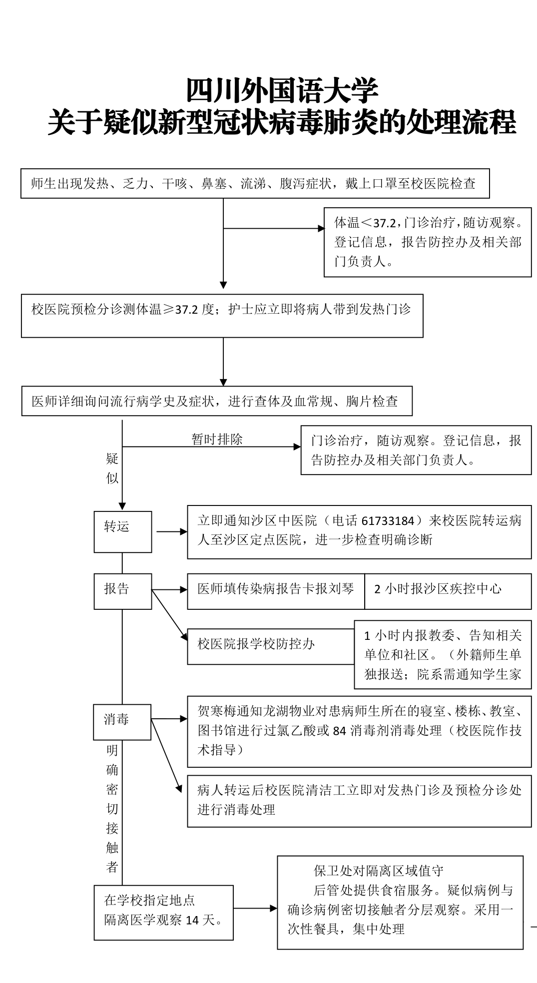 附件:四川外国语大学疑似新型冠状病毒肺炎的处理流程