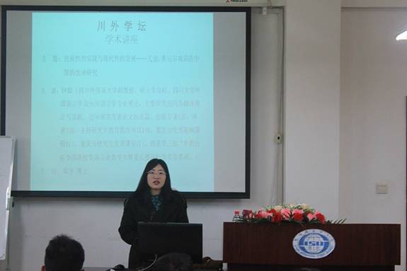 2017年11月23日晚上7:00,应川外学坛及语言脑科学研究中心的邀请,四川外国语大学翻译学院硕士生导师钟毅博士(副教授)在博文楼六楼学术报告厅作了题为“民族性的实现与现代性的发展——尤金·奥尼尔戏剧在中国的改译研究”的学术讲座。此次讲座由语言脑科学研究中心邓宇博士主持,我校部分青年教师及硕博士研究生参加了此次活动。