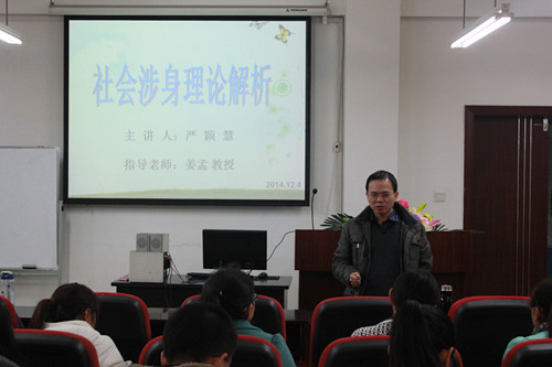 12月4日晚上7:00,川外学坛“学子之星”学术讨论在博文楼六楼报告厅如期举行。本次讨论的主题为“社会涉身理论”,主讲人是2013级研究生严颖慧同学,由庞婷同学主持,姜孟教授出席,此外各年级研究生参加了本次学坛。