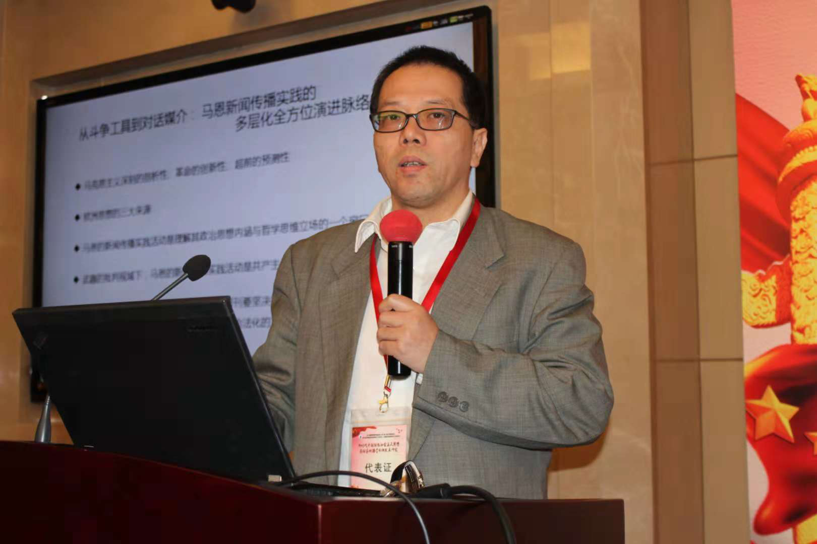 林克勤教授从马克思主义近两百年来引领世界人文社科前沿的视角出发,围绕三个方面作了论述:一是从斗争工具到对话媒介——马恩新闻传播实践的多层化全方位演进脉络;二是人的身体体验——马克思主义新闻观形成的基本前提;三是依托于一般社会规律的认知加工——马克思主义新闻观的理念抽象与范畴型构。他指出,马克思主义是革命的、批判的理论体系,其冲破规制藩篱创立的“实践—生存论”哲学思维方式既奠基于社会现实的体验与考察,又升华了人脑认知加工的知识生产题域;既聚焦于对资本主义当下语境的解构和批判,又凝炼为对人类社会精神行为的总结与预测。