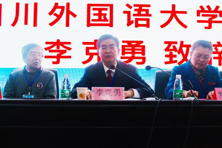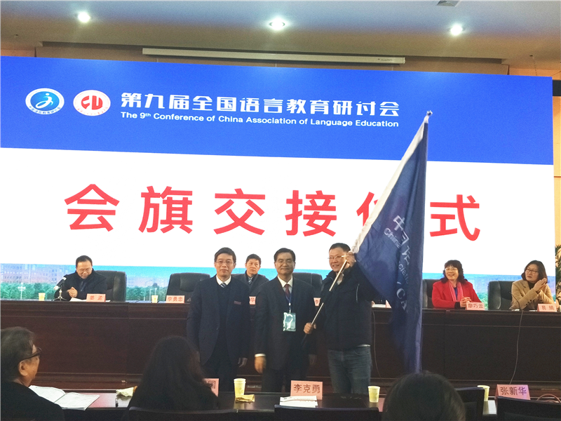 随后,举行大会闭幕式,闭幕式由四川外国语大学姜孟教授主持。首先,晏小琴、刘辅兰、王明树、曾剑平、邢富坤五位教授依次作了分会场总结发言。他们表示,此次研讨会人才荟萃,研究报告内容丰富,话题前沿,对我国语言教育具有高度的启发性和引导性。接着,学会副会长倪传斌教授代表学会致闭幕辞。最后,学会会长李克勇教授宣读理事会决议并向下届会议承办单位电子科技大学代表授会旗;下届会议承办单位代表发表了热情洋溢的讲话,并向全体与会代表发出了明年相聚成都的热诚邀请。