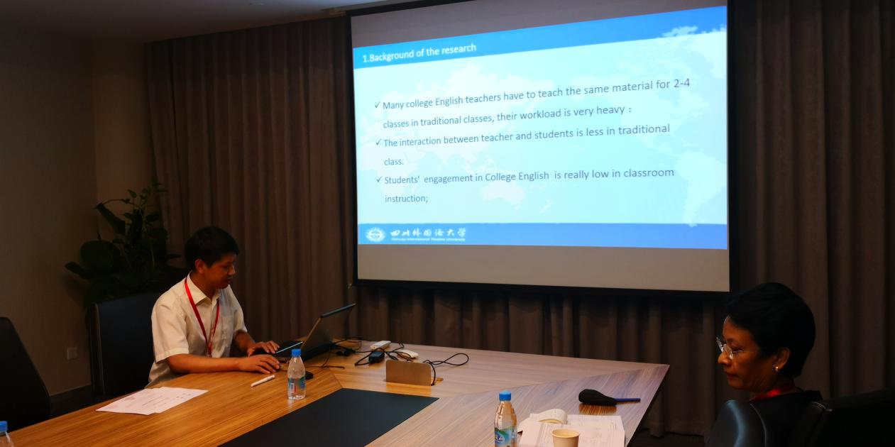 8月18号上午2016级研究生邝燊做了题为“A Study on PTMFInstructional Model in College English Integrated Course”(大学英语综合教程PTMF教学模式研究)的报告。报告围绕大外部如何紧跟信息技术发展趋势,将慕课(MOOCs)、项目教学(Project-based Language Learning)、任务型教学(Task-based Language Teaching)和翻转课堂(Flipped classroom)进行有机整合,进行混合式教学,提升大学英语教学质量。该报告将我校大外部正在进行的大学英语教学改革完整地呈现给了各位专家学者。