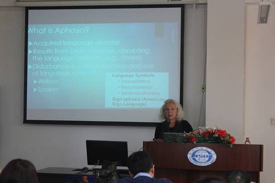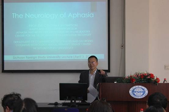 2018年4月3日下午3:00,应四川外国语大学语言脑科学研究中心的邀请,美国西北大学沟通科学学院资深教授、失语症神经康复中心主任Cynthia Thompson教授在我校举行题为“失语症的神经语言学”的学术讲座。本次活动由语言脑科学研究中心主任、博士生导师姜孟教授主持,北京语言大学康复科学学院院长高立群教授、校内外众多青年教师以及硕博士生参加了本次活动。
