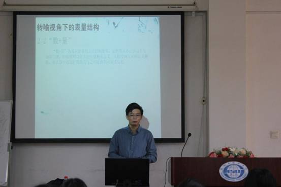 李勇忠教授的讲座“量名转隐喻关系的认知新解”分为三部分。首先,他介绍了名词表量结构的基本形式、功能以及既往研究。随后,李教授基于汉语古典诗词语料,分别从转喻、隐喻视角对汉语表量结构进行认知阐释。他指出,转喻视角下的汉语表量结构主要有“数+量+名”、“数+量”、“数+名”、“名+数+量”、“数+量+形”五种,而隐喻视角下仅有“数+量+名”和“数+名+名”两种。最后,李教授归纳指出,量词与原名词组合后为转喻关系,原名词与现名词聚合后为隐喻关系。量词与现名词为组合后的隐喻关系,但量词有时无法展现名词的形态,需要借助名词来充当量词,即名量词。此时的名量词与名词虽为组合关系但却也产生了隐喻机制。因此,转喻和隐喻作为两大认知机制共同构建表量结构中成员之间的关系。
