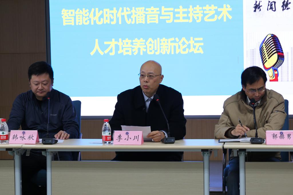 此次论坛围绕主题“智能化时代播音与主持艺术人才的培养创新”开展。李小川对莅临论坛的专家表示衷心的感谢。他回顾了川外播音主持专业的历史沿革和专业特色,提出了川外的人才培养目标和培养方案,表示非常期待未来川外与各高校的合作,能让川外的播音主持专业迈向更好的未来。