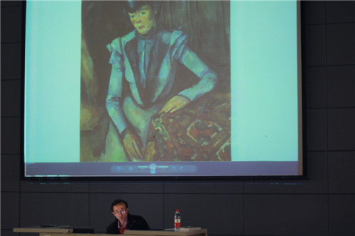 教授从1874年印象派的第一次画展讲起,以莫奈、毕沙罗、雷诺阿等印象派大师的画为例,阐述了印象派画作笔法粗放,喜户外作画,注重气象、光线变化与色彩之间的关系等特征;随后他介绍了塞尚的生平和画作风格,尤其阐释了他从早期积极参与印象派革新运动到逐渐远离印象派,转而倾向于立体派的过程和可能的原因;最后杜耀德教授带大家一起赏析了塞尚的苹果静物画,从专业的角度分析了塞尚画的特点,期间教授还穿插讲述到塞尚与作家左拉之间真挚而又绝望的友谊,整个讲座内容丰富、生动有趣。