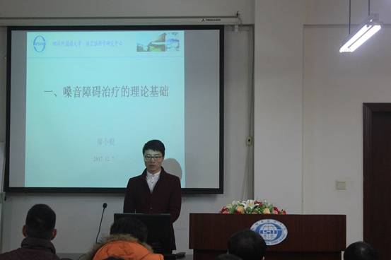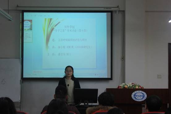 2017年12月7日晚上7:00,川外学坛“学子之星”学术沙龙在博文楼六楼报告厅举行。本次主题是“言语呼吸障碍的评估与矫治”,主讲人为2016级研究生廖小根和刘虹利同学,活动由潘雪瑶博士主持,我校姜孟教授、邓宇博士、部分青年教师以及硕博士研究生参加了此次沙龙。