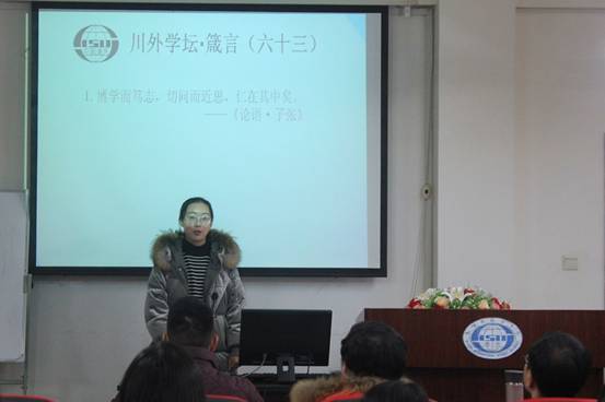 首先,2017级研究生郭凯莉同学为大家分享了两则箴言。一则是来自《论语》的“博学而笃志,切问而静思,仁在其中矣”,鼓励大家要坚定意志,博览群书,不断提高自己的知识广度和深度。另一则是Les Brown的名言:“Shoot for the moon. Evenif you miss, you’ll land among the stars”,启发大家立志当高远,纵使最终未能实现,也不会因为过去的努力而懊悔。接下来,报告正式开始。