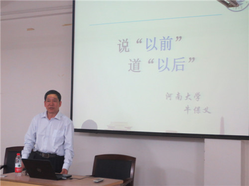 紧接着,牛保义教授以五个关键词“以前,以后,参照点,顺时感知,逆时感知”为线索,将本次讲座分6大板块。首先,牛教授深入浅出地讲解了“以前”、“以后”的句法结构特征,将“以前”、“以后”分为单用和连用两种情况进行分析;接着,他带领大家分析了“以前”、“以后”这两个词的语法意义、语义特征,并提出了研究的问题:说话人究竟是如何使用“以前”、“以后”表达时间的呢;然后,牛教授给大家耐心地解释了本次研究采用的理论基础—时间感知原则,并介绍了2个词则:参照点次则以及双向性次则;紧接着,他用轴向图生动地为大家讲解了“以前”、“以后”语义的概念化,也将“以前”、“以后”分为单用和连用两种情况进行分析;接下来,牛教授采用跨语言分析的方法,简洁明了地分析了“以前”、“以后”语义概念化的认知特征;最后,牛保义教授和大家分享了本次研究的结论:“以前”、“以后”为时间先后关系标记,这两个词语义概念化的认知特征可以抽象为具有一定普遍意义的“时间感知原则”,即时间的流动是单向的,语言对时间的感知是双向的。