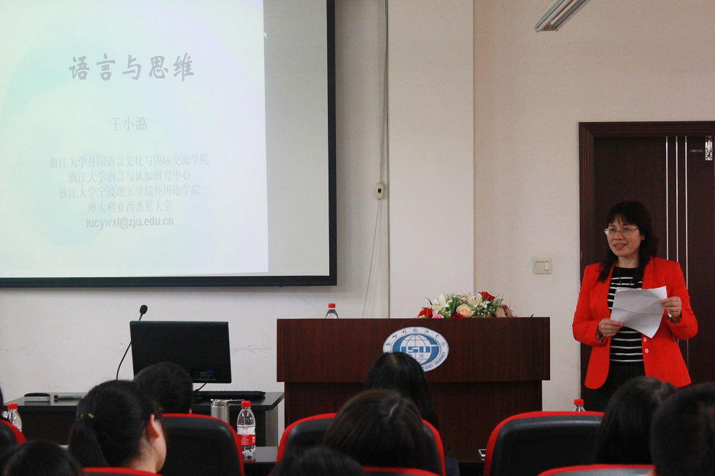 2016年10月26日下午16:00,应我校研究生院邀请,浙江大学外国语言文化与国际交流学院、浙江大学语言与认知研究中心、浙江大学宁波理工学院外国语学院教授王小潞在我校博文楼六楼报告厅举行了题为“语言与思维”的学术讲座。讲座由廖巧云教授主持,姜孟教授与近百名博士、硕士研究生以及校内外青年教师聆听了本次学术讲座。