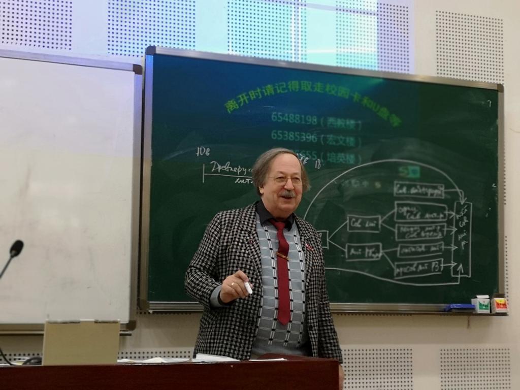 2018年11月18日晚7点,俄罗斯自然科学院院士、俄罗斯国立人文大学教授伊戈尔·瓦基莫维奇·康达科夫为俄语系师生做了系列讲座第一场——《作为统一文本的19-20世纪俄罗斯诗歌》,在我校西区教学楼B1-1举行,讲座由俄语系主任徐曼琳教授主持。