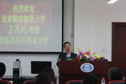 年5月13日下午,北京航空航天大学卫乃兴教授应邀在博文楼六楼报告厅举行题为“co-selections in linguistics and applied linguistics”的学术讲座。讲座由姜孟教授主持,重庆大学辜向东教授出席,我校部分青年教师和百余名研究生参加了本次学坛。