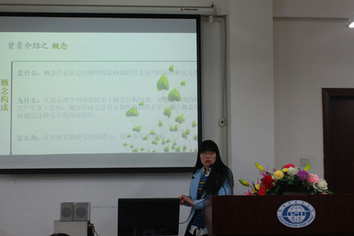 2014年12月18日晚上7:00,川外学坛“学子之星”学术讨论活动在博文楼六楼报告厅如期举行。本次讨论的主题为“概念表征的内容:从特征列表到递归框架”,主讲人是2013级研究生陈秀英同学,由李宇同学主持,姜孟教授出席,此外各年级研究生参加了本次论坛。