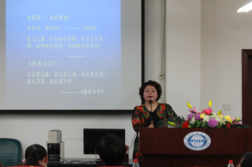 then, prof. li xiaoqing began her excellent report. this report was composed of three parts. in the first part, prof. li expounded the relationship between language and culture from the perspective of the development of spoken and written english in the human history. she pointed out that language has created, transmitted and developed culture. after that, prof. li interpreted the history, geography, politics, religion and philosophy of several ancient western countries (including mesopotamia, egypt, greek, roman) and discussed the differences and reasons of their attitudes towards death by combining fairy tales explanation. finally, prof. li analyzed the human nature from individualism, secularism, utilitarianism and criticism and she pointed out that nihilism originated from the evaporation of christian faith. prof. li’ s lecture was profound and well documented which not only deeply analyzed the influence of history, religion on the development of western culture but also vividly presented the extensiveness and profoundness of western traditional culture, providing a spiritual feast for the audience.