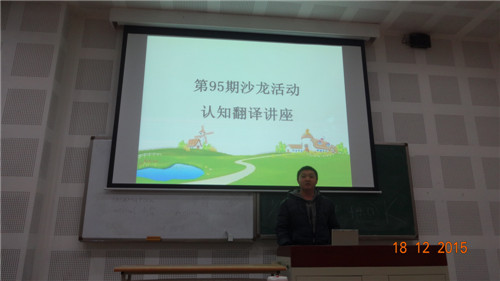 教室如期举行。本次沙龙交流活动以“认知翻译观及对话句法”为主题。讲座由科研沙龙协会会长管邦迪主持,由特邀嘉宾原卫国博士以及二年级研究生荣婷婷和王正本主讲。众多研究生参与了本次讲座,现场气氛活跃,学习氛围浓厚。