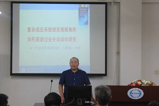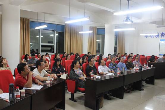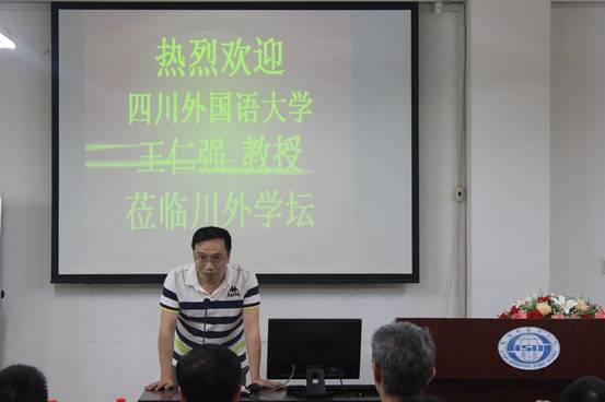 2017年9月14日晚上19:00,四川外国语大学研究生院院长王仁强教授应我校语言脑科学研究中心及川外学坛的邀请,在博文楼六楼报告厅举行题为“复杂适应系统语言观视角的英语过去分词词化问题研究”的学术讲座。讲座由国际教育学院刘宇教授主持,我校姜孟教授、刘玉梅教授、胡文飞教授、张宏教授、赵永峰教授、刘兴兵教授、马武林教授、邓宇博士等出席。此外,各年级博士、硕士研究生参加了本次学坛活动。