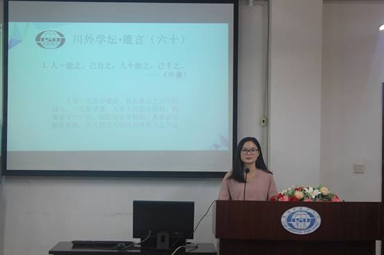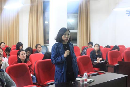 首先,2015级研究生李爱莲同学为大家分享了两则箴言。一则是选自《中庸》的“人一能之,己百之;人十能之,己千之”,寓意就是勤能补拙,后天的努力可以弥补先天之不足。另一则是出自Benjamin Franklin的名言“By failing toprepare, you are preparing to fail ”(不备而战,不战而败),即,凡事预则立,不预则废,机会只偏爱有准备之人。