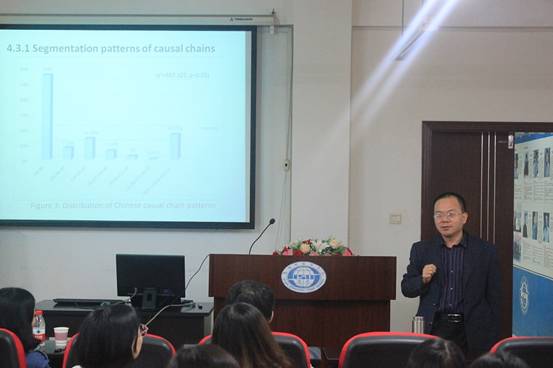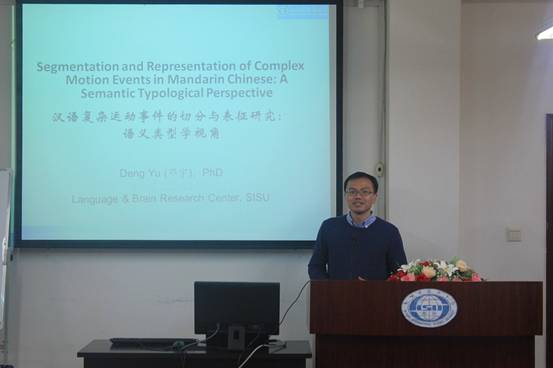 2017年10月12日晚上7点,四川外国语大学语言脑科学研究中心专职研究员邓宇博士在博文楼六楼报告厅举行题为“汉语复杂运动事件的切分与表征研究:语义类型学视角”的学术讲座。此次讲座由姜孟教授主持,重庆第二师范学院青年教师高楠、我校青年教师何巧玲以及部分硕博士研究生参加了本次学术活动。
